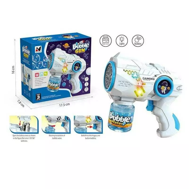 Пістолет з мильними бульбашками YH 358-2 (48/2) підсвічування, пляшечка з мильним розчином, автоматичний, в коробці
