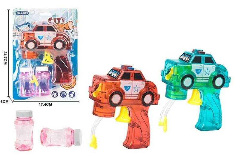 Пістолет з мильними бульбашками YM 07 (96/2) 2 кольори, “Поліцейська машина”, підсвічування, 2 мильних розчини, механічний принцип роботи, на листі