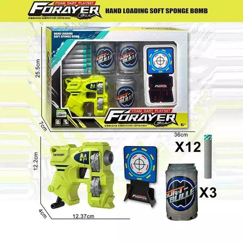 Пістолет з мішенню JM 001 B (36) 12,5х4х12 см, механічний принцип роботи, 2 картонні мішені, 3 банки, 12 м’яких патронів, в коробці