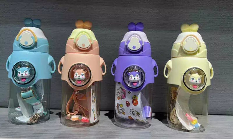 Пляшка для води C 69361 (60) 700 мл, пластикова, трубочка, застібка із запобіжником, наліпки, декор, ремінець, в коробці, ВИДАЄТЬСЯ ТІЛЬКИ МІКС ВИДІВ