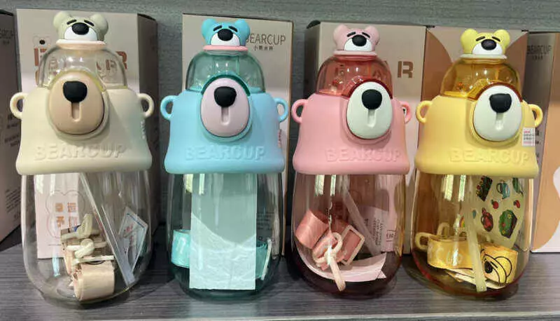 Пляшка для води C 69363 (40) 900 мл, пластикова, наліпки, трубочка, ремінець, пластикова застібка, в коробці, ВИДАЄТЬСЯ ТІЛЬКИ МІКС ВИДІВ