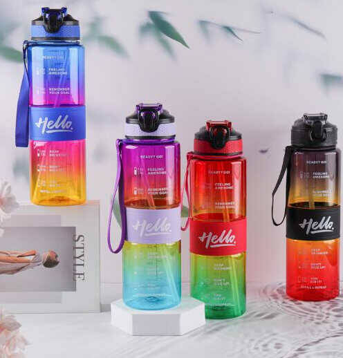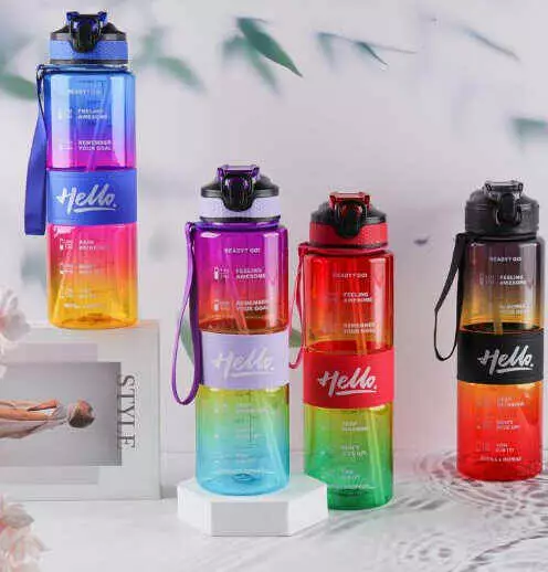 Пляшка для води C 76359 (80) 4 види, 1000 мл, пластикова, ремінець, трубочка, в пакеті, ВИДАЄТЬСЯ ТІЛЬКИ МІКС ВИДІВ