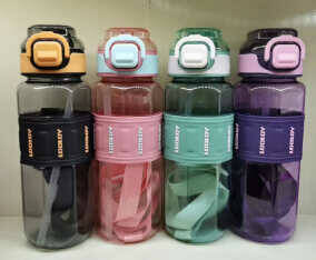 Пляшка для води C 76362 (80) 4 види, 750 мл, пластикова, ремінець, трубочка, в пакеті, ВИДАЄТЬСЯ ТІЛЬКИ МІКС ВИДІВ
