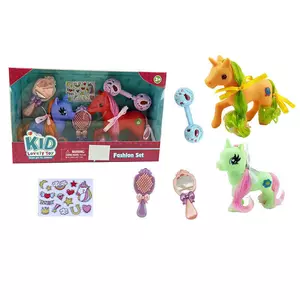 Набір поні SM 338 C12 (96/2) 2 види, гумові, висота 13см, щітка для волосся, дзеркальце, брязкальце, наліпки, в коробці