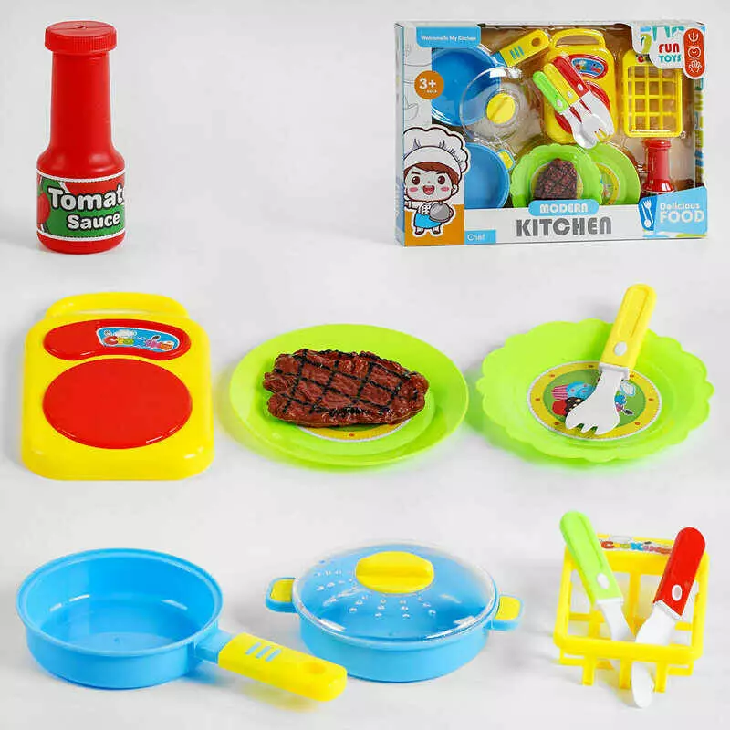 Посудка 9036 (72/2) пательня, сотейник, пічка, прибори для серверування, сітка гріль, стейк та кетчуп, у коробці