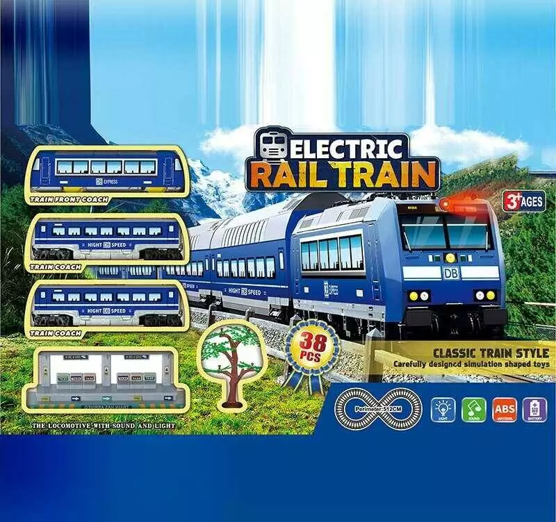 Залізниця JHX 5612 (18/2)локомотив, 2 вагони, периметр колії: 512 см, підсвічування, звуки, аксесуари, в коробці