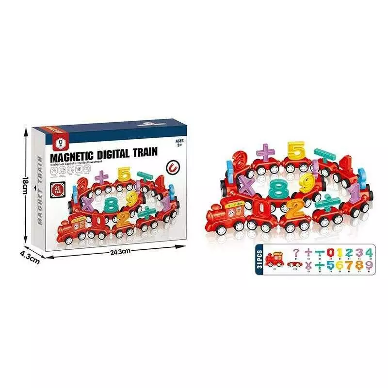 Потяг магнітний HD 164 A (72/2) 31 елемент, знімні числа, математичні знаки, вагончики на колесах, гумові колеса, в коробці