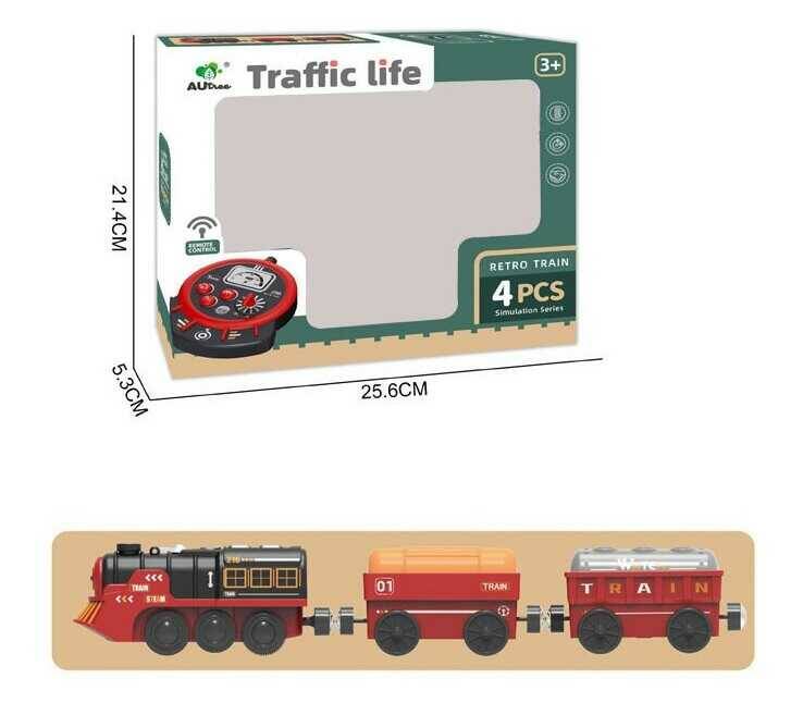 Потяг на радіокеруванні AU 9663 (60/2) 2 вагони, звуки, підсвічування, парогенератор, в коробці