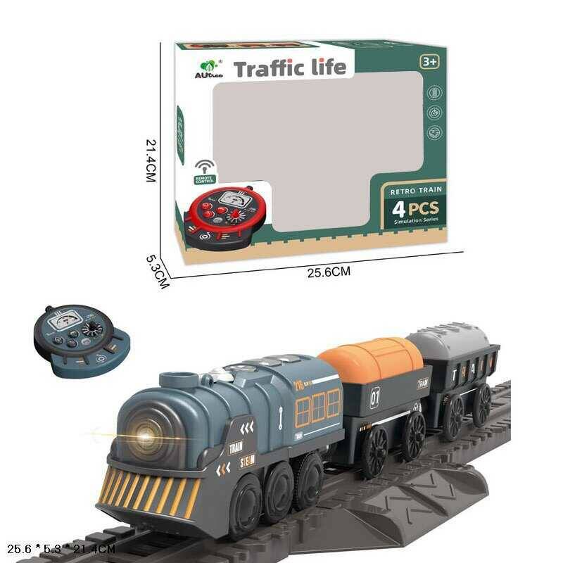 Потяг на радіокеруванні AU 9665 (60/2) 2 вагони, звуки, підсвічування, парогенератор, в коробці