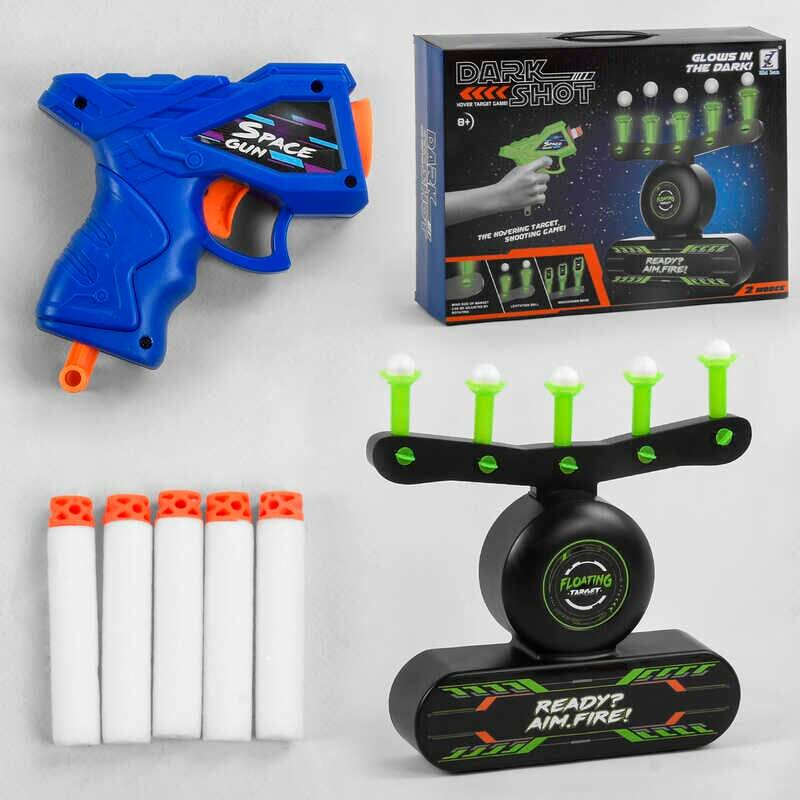 Повітряний тир 3361 (24/2) працює від USB, пістолет, 7 м`яких патрон, люмінесцентні тримачі, в коробці