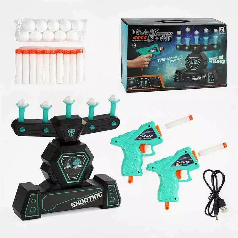 Повітряний тир 3362 (24/2) на батарейках, працює від USB, 2 пістолета, 10 м`яких патрон, люмінесцентні тримачі, в коробці