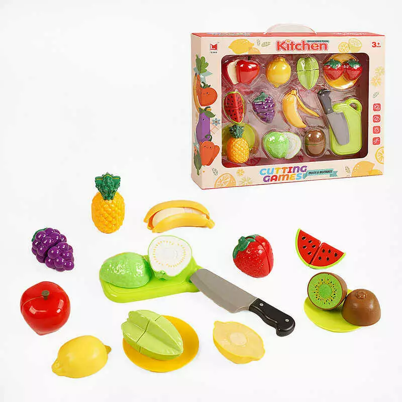 Продукти на липучках 1290 A (18) 10 фруктів, ніж, 2 тарілки та дошка для нарізання, в коробці