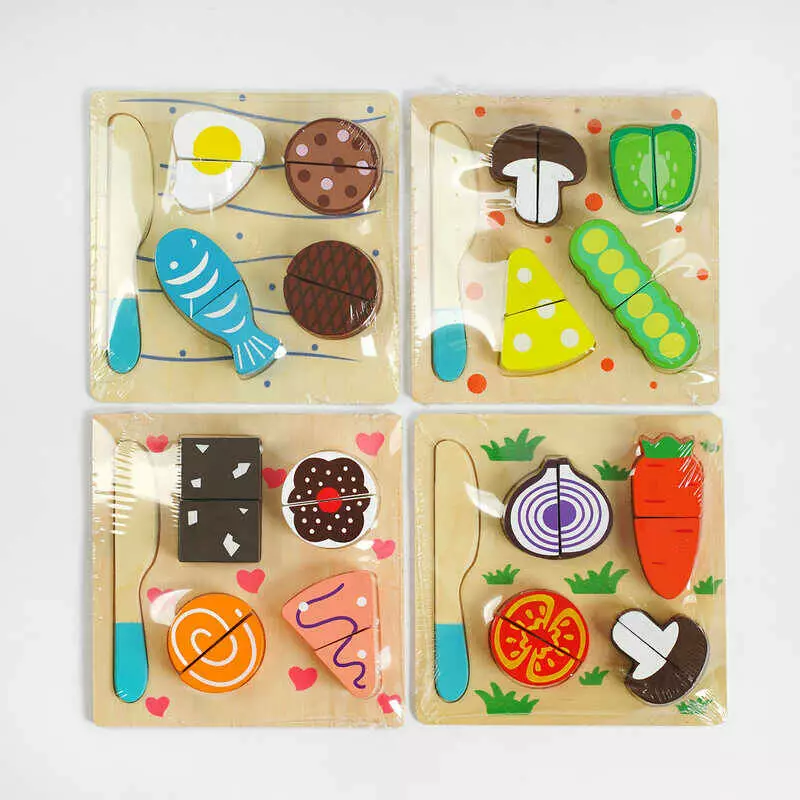 Пазли-вкладиші С 57526 (150) дерев`яні, продукти на липучках, у плівці, МІКС ВИДІВ