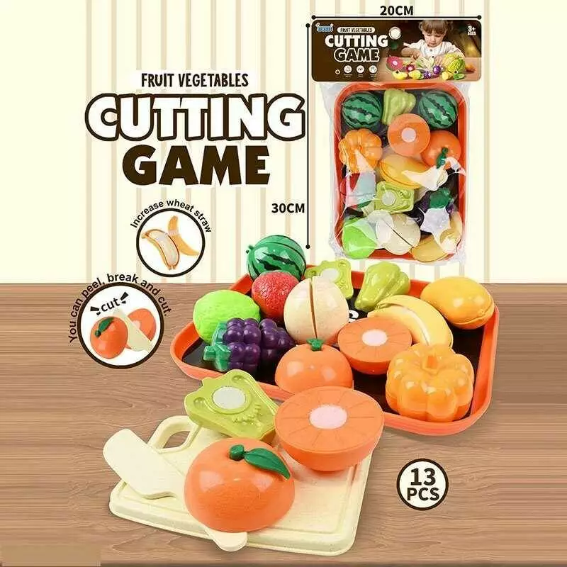 Продукти на липучці JQ 912-6 (48) 13 елементів, овочі, фрукти, таця, дощечка, ніж, в пакеті