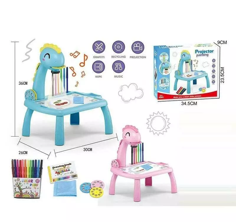Столик з проєктором RFY 222-5 (48/2) 2 кольори, “Динозавр” 3 диски, фломастери, серветка, на батарейках, музика, підсвітка, в коробці