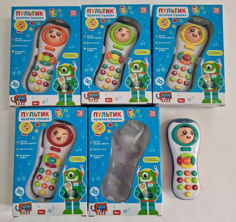 Пульт музичний 69973 (120/2) "TK Group", ОЗВУЧУВАННЯ УКРАЇНСЬКОЮ МОВОЮ, 4 кольори, 4 дитячі пісні, казка, вивчення цифр, в коробці