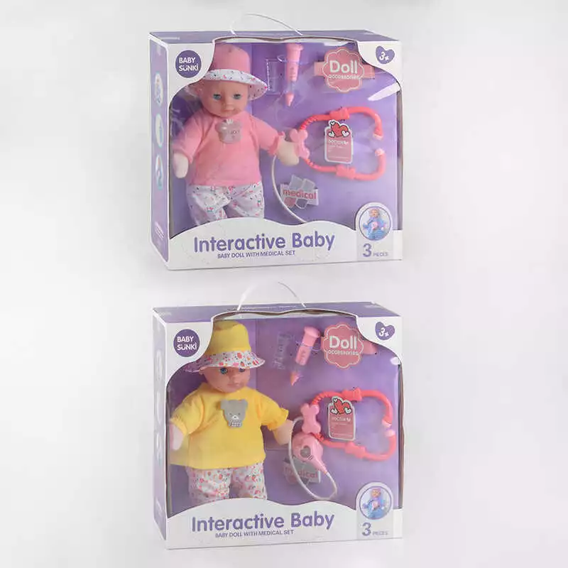 Пупс 1861-11/12 (12) 2 вида, мягкотелый, говорит мама-папа, издает звуки, плачет, смеется, 3 аксессуара, функциональный стетоскоп, в коробке