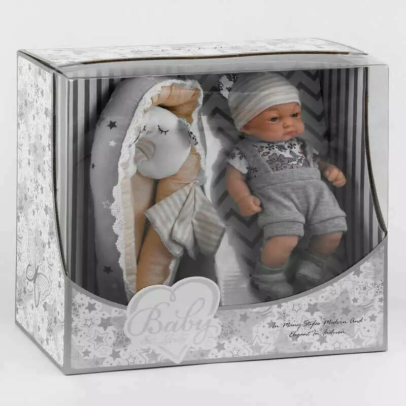 Пупс 219-1 (18/2) высота 25 см, комбинезон, шапочка, носочки, полотенце, матрасик с подушечкой, в коробке