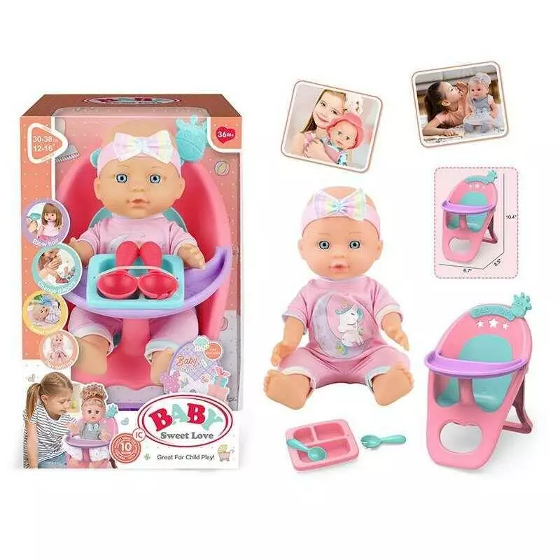 Пупс 3933 D-1 (32) висота 27 см, стільчик для годування, тарілочка, в коробці
