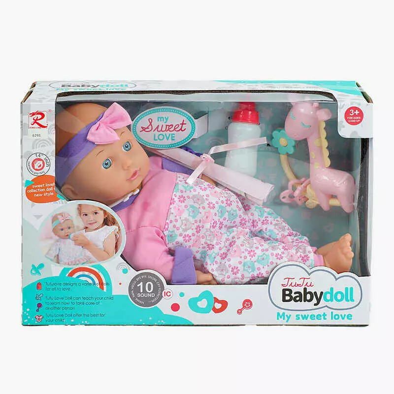 Пупс 6291 (24) м’якотілий, п’є з пляшечки, брязкальце, музичний чіп, висота 37 см, в коробці
