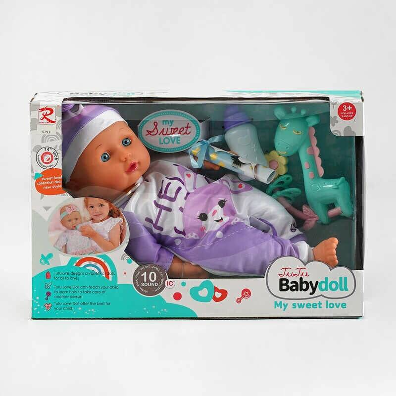 Пупс 6293 (24) м’якотілий, п’є з пляшечки, пляшечка, брязкальце, музичний чіп, висота 31 см, в коробці