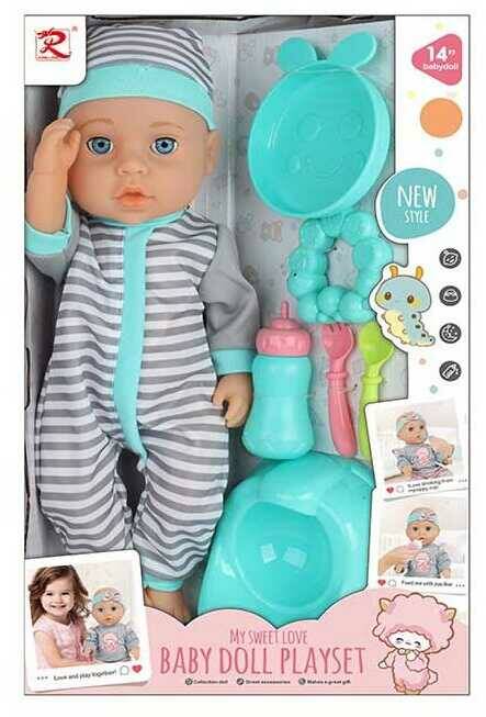 Пупс 6332 (24) висота - 35 см, закриваються очі, ходить на горщик, знімний одяг, пляшечка, виделка, ложка, тарілочка, іграшка, горщик, в коробці