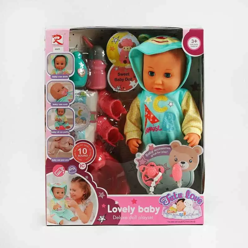 Пупс 6920 (12) п’є з пляшечки, ходить у горщик, закриває очі, аксесуари, музичний чіп, висота 36 см, в коробці