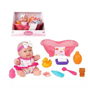 Пупс 718 C (18/2) ванна, рушник, засоби для купання, пискавка, висота 24 см, в коробці