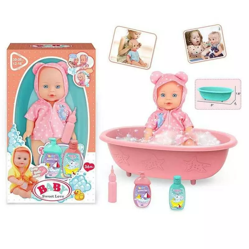 Пупс 7933 C-2 (48) висота 26 см, знімний одяг, ванна довжиною 32 см, 2 баночки з гелями для душу, пляшечка, в коробці