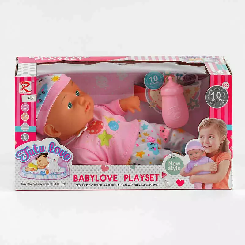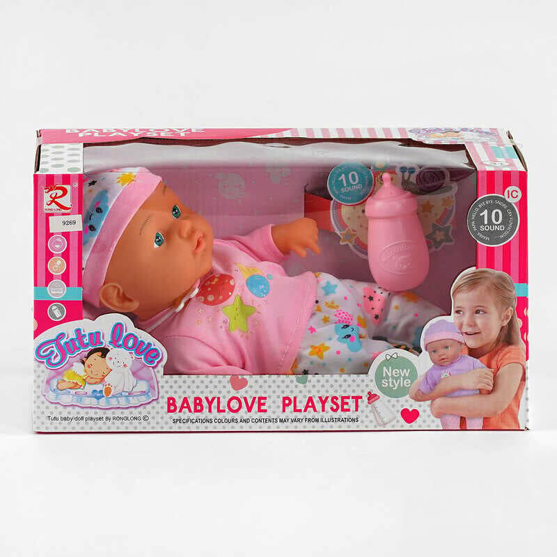 Пупс 9269 (36) м`якотілий, музичний чіп, 10 звукових ефектів, пляшечка, у коробці