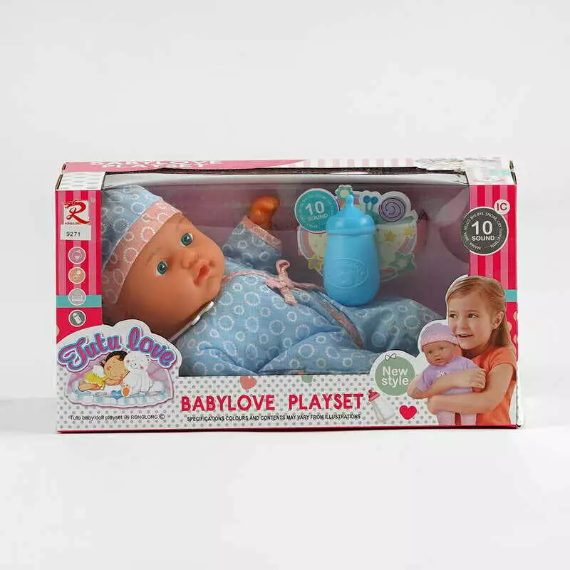 Пупс 9271 (36) м’якотілий, п’є з пляшечки, пляшечка, музичний чіп, висота 31 см, в коробці