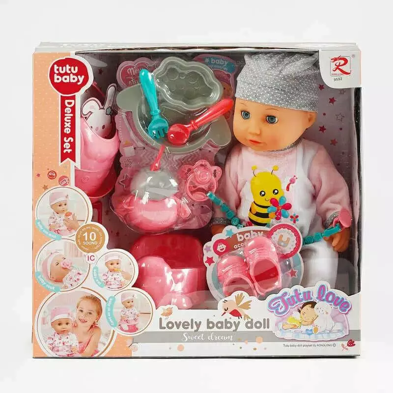 Пупс 9592 (12) п’є з пляшечки, закриває очі, аксесуари, музичний чіп, висота 34 см, в коробці