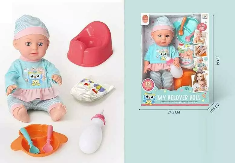 Пупс 98056 B (36/2) музичний чип, звуки, слова англійською мовою, сміється, плаче, п’є, ходить в туалет, аксесуари, в коробці