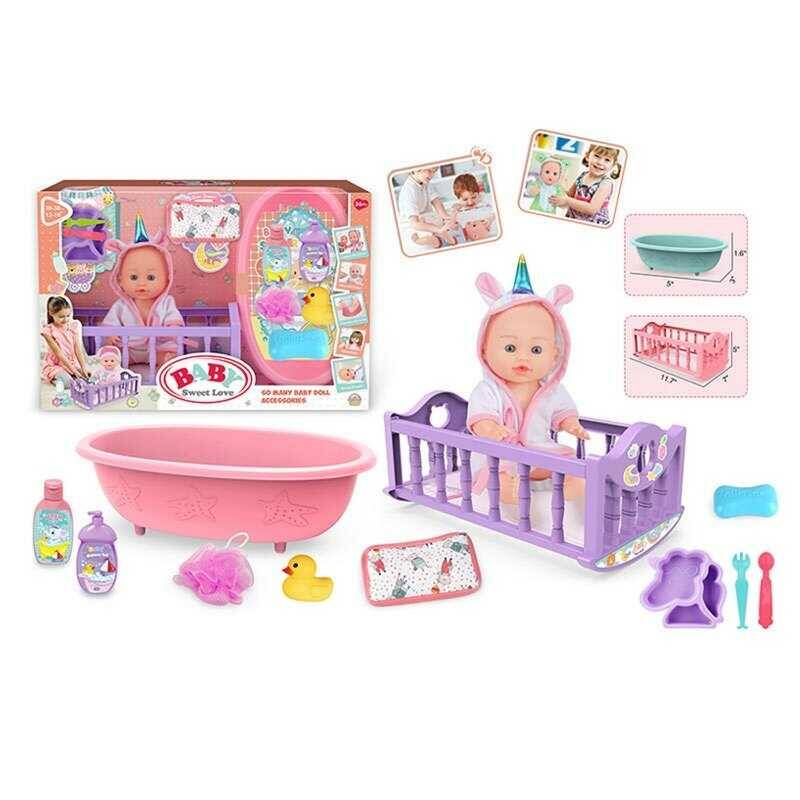 Пупс 9933 A-2 (12) висота 26 см, ліжечко, ванночка, знімний одяг, аксесуари, в коробці