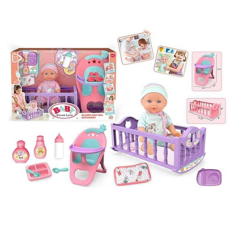 Пупс 9933 A-6 (12) висота 28 см, ліжечко, знімний одяг, стільчик для годування, аксесуари, в коробці