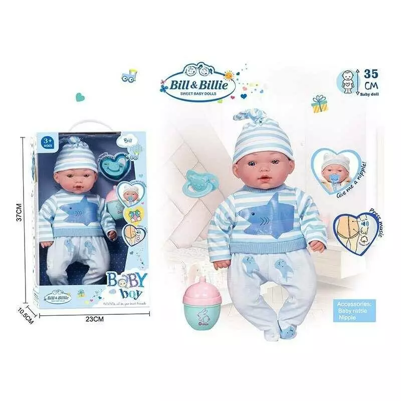 Пупс DH 2370 E (24/2) висота 35 см, музичний чип, м`якотілий, аксесуари, знімний одяг, імітація скляних очей, в коробці