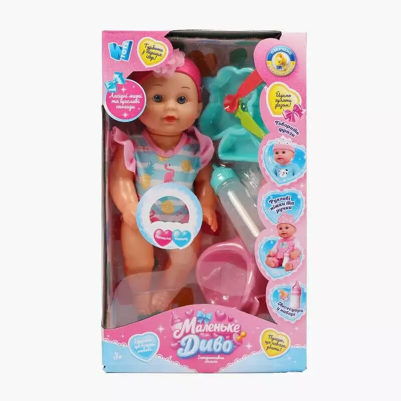Пупс функціональний UKA-A 0940-11 (32) "WToys", ОЗВУЧУВАННЯ УКРАЇНСЬКОЮ МОВОЮ, звук, від батарейок, п`є, ходить в туалет, в коробці