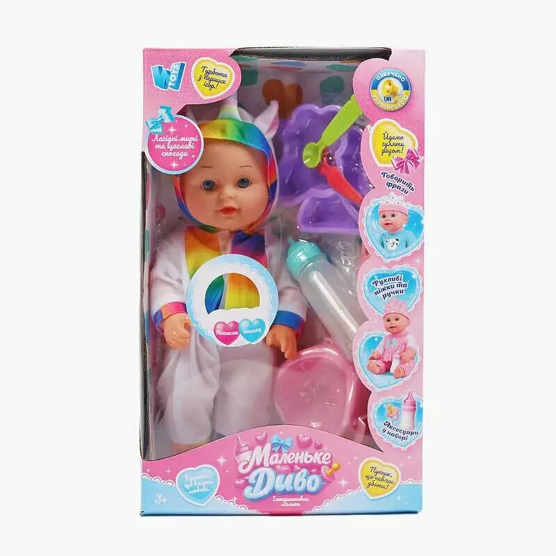 Пупс функціональний UKA-A 0940-12 (32) "WToys", ОЗВУЧУВАННЯ УКРАЇНСЬКОЮ МОВОЮ, звук, від батарейок, п`є, ходить в туалет, в коробці