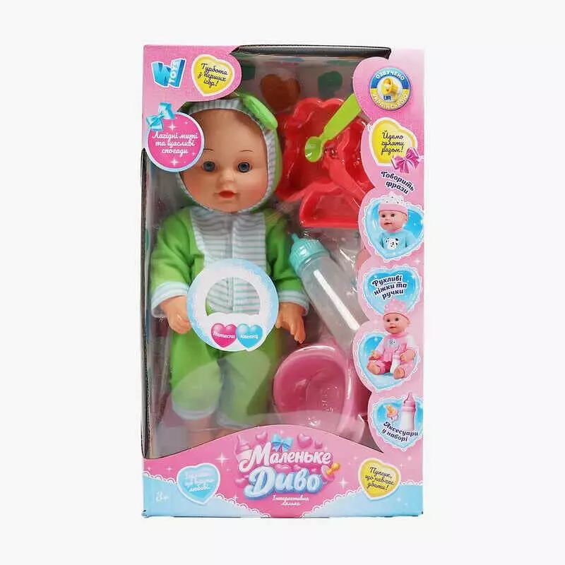 Пупс функціональний UKA-A 0940-14 (32) "WToys", ОЗВУЧУВАННЯ УКРАЇНСЬКОЮ МОВОЮ, звук, від батарейок, п`є, ходить в туалет, в коробці