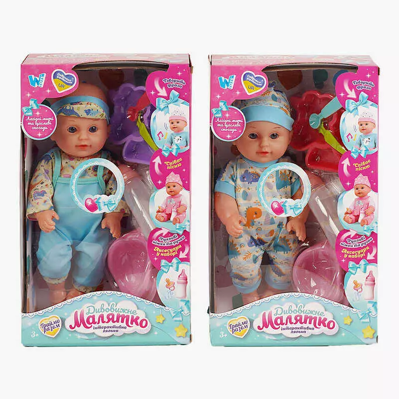 Пупс функціональний UKA-A 0940-3 (32/2) 2 види, "WToys", ОЗВУЧУВАННЯ УКРАЇНСЬКОЮ МОВОЮ, звук, від батарейок, п`є, ходить в туалет, в коробці