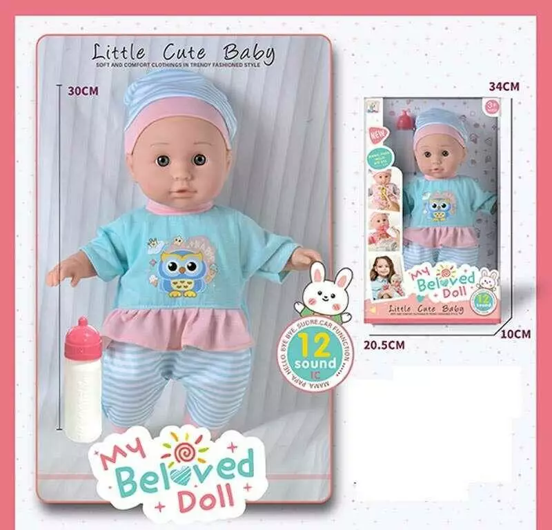 Пупс KH 956-2 (36/2) висота 30 см, м’якотілий, музичний чіп, знімний одяг, пляшечка, в коробці