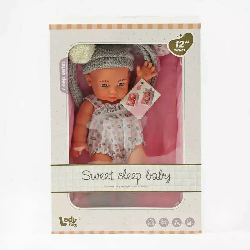 Пупс LD 8809 A (24/2) м’яке ліжечко, розвивальна дуга, висота 32 см, в коробці