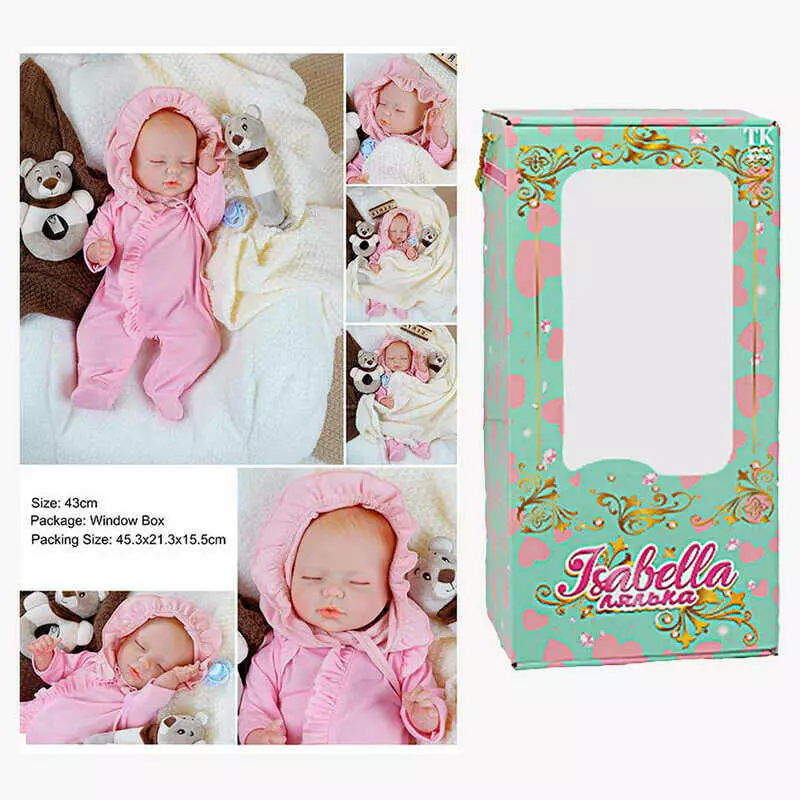 Пупс QM 240017 (12) "TK Group", висота: 42 см, гумовий, пустушка, пляшечка, памперс, шапочка, в коробці