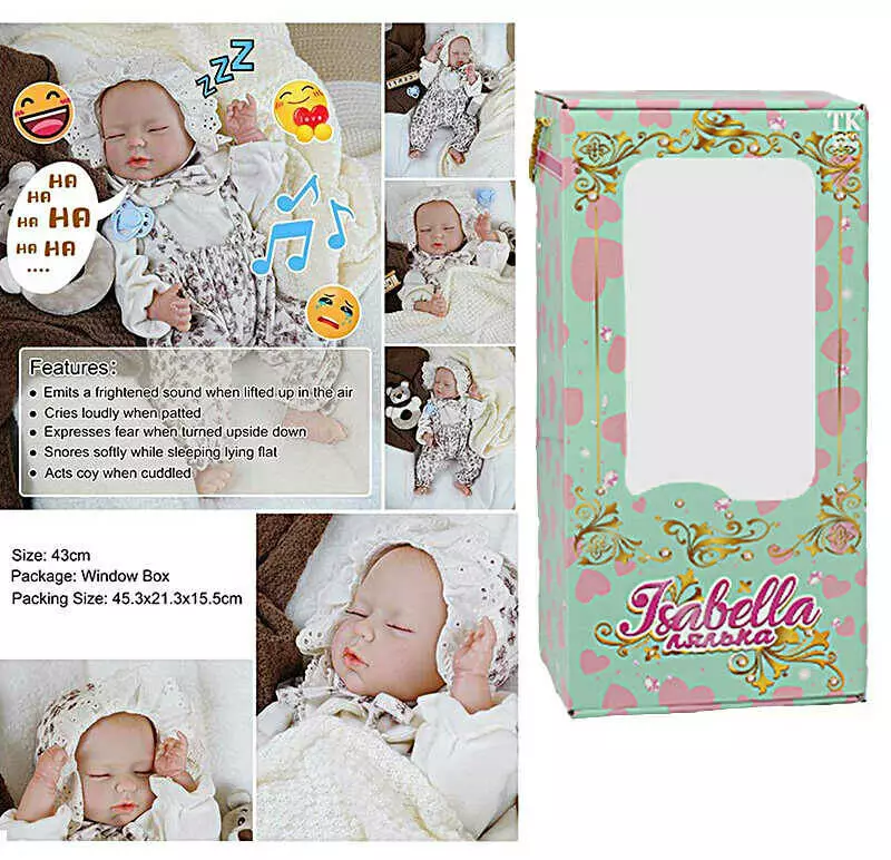 Пупс QM 24007 A (12) "TK Group", функціональний, датчик руху, звуки, висота: 42 см, гумовий, озвучені репліки англ. мовою, аксесуари, в коробці