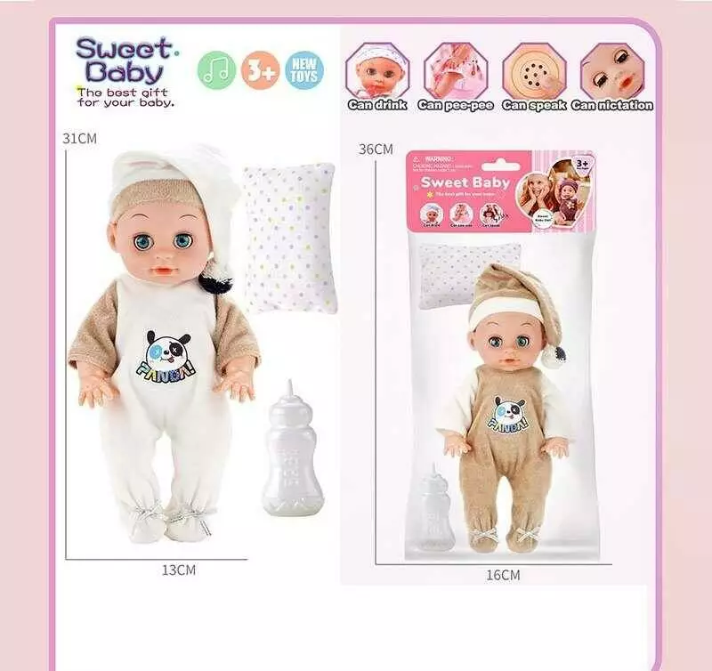 Пупс WD 2324-1 AB (128/2) 2 види, висота 31 см, музичний чіп, звуки, заплющує очі, п’є, “ходить” на горщик, знімний одяг, рухомі кінцівки, аксесуари,