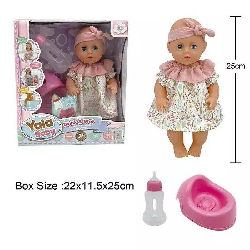 Пупс YL 2425 A-D (48) п`є з пляшечки, ходить на горщик, заплющує очі, аксесуари, висота 25 см, в коробці