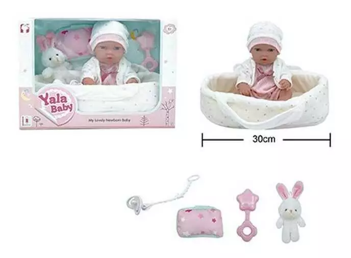 Пупс YL 2512 D-B (24) гумовий, висота 30 см, кокон з ручками, подушечка, брязкальце, пустушка, в коробці