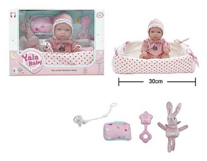 Пупс YL 2512 D-D (24) гумовий, висота 30 см, кокон з ручками, подушечка, брязкальце, пустушка, в коробці