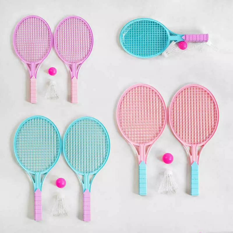 Набір ракеток 5001 (360) 3 кольори, 2 штуки, м`ячик, воланчик, в сітці, ВИДАЄТЬСЯ ТІЛЬКИ МІКС ВИДІВ