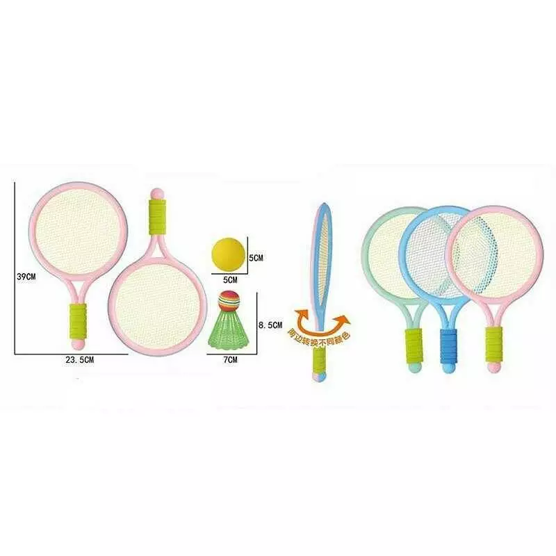Набір ракеток 833-2 (96/2) 3 види, 2 штуки, м’які накладки на ручках, пластиковий каркас, м’який м’ячик та воланчик, у сітці, ВИДАЄТЬСЯ МІКС ВИДІВ